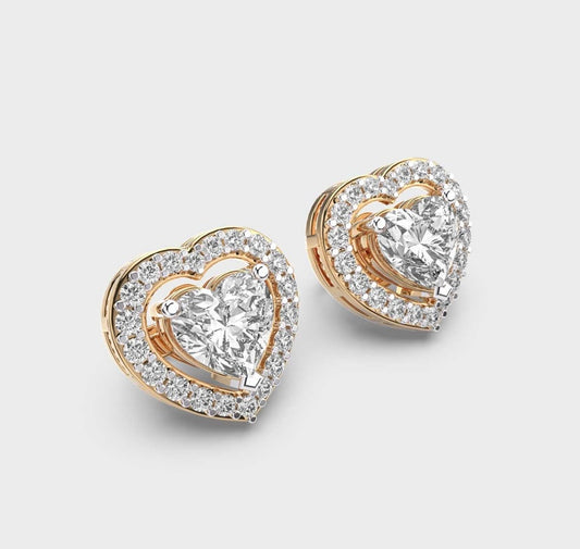 1 Carat Heart and Halo Studs
