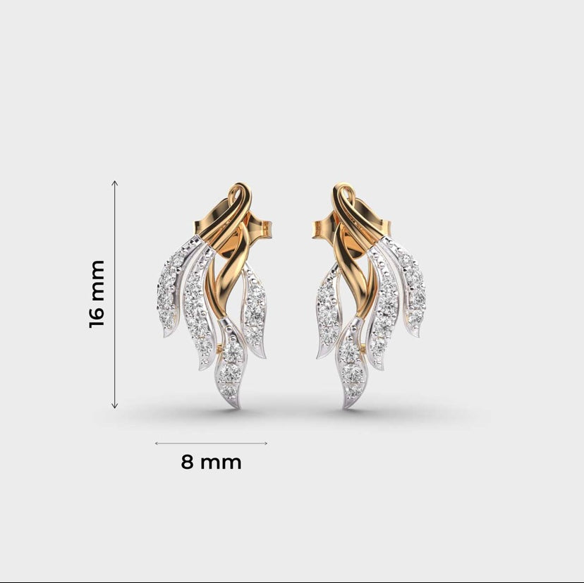 A dual-tone (gold and white) earring pair with cascading diamond-studded leaf motifs. They bring a natural, elegant look, perfect for special occasions.